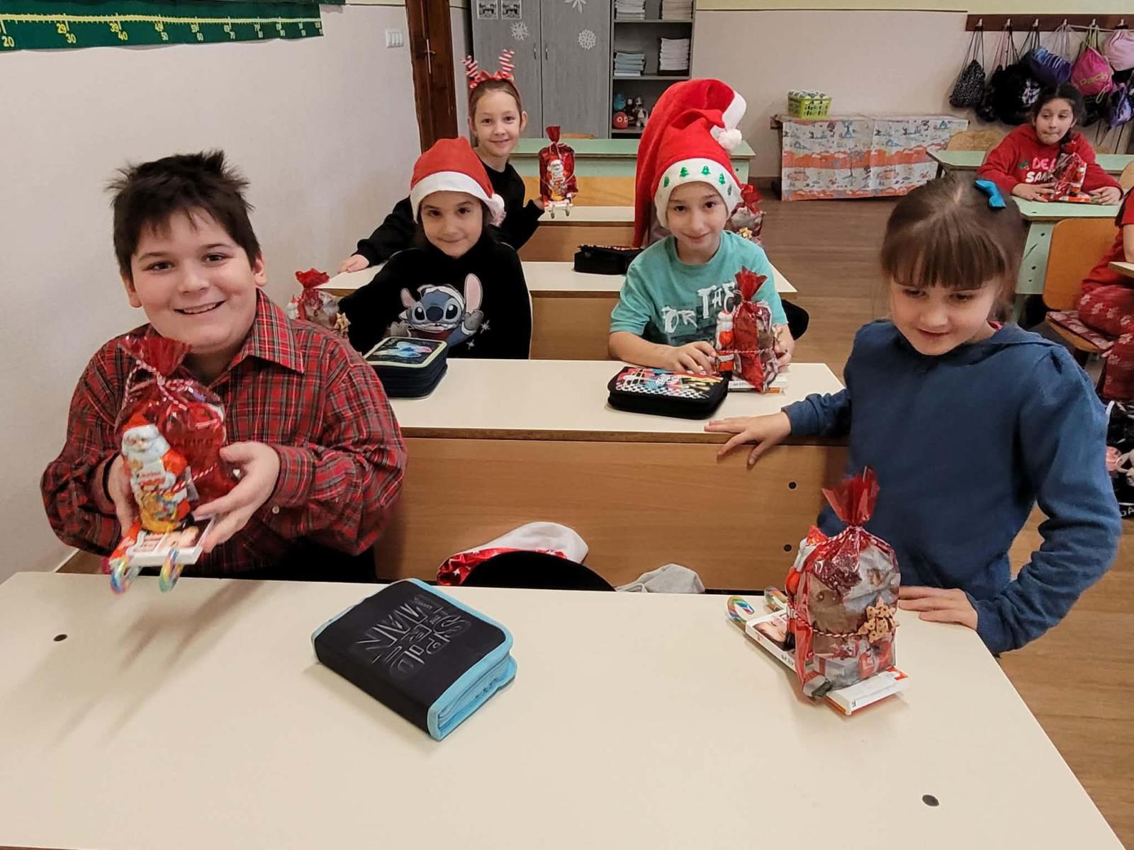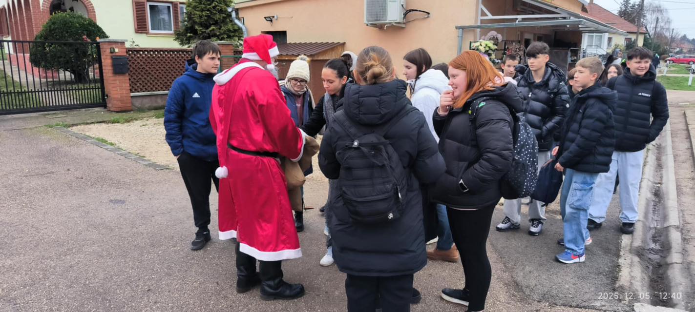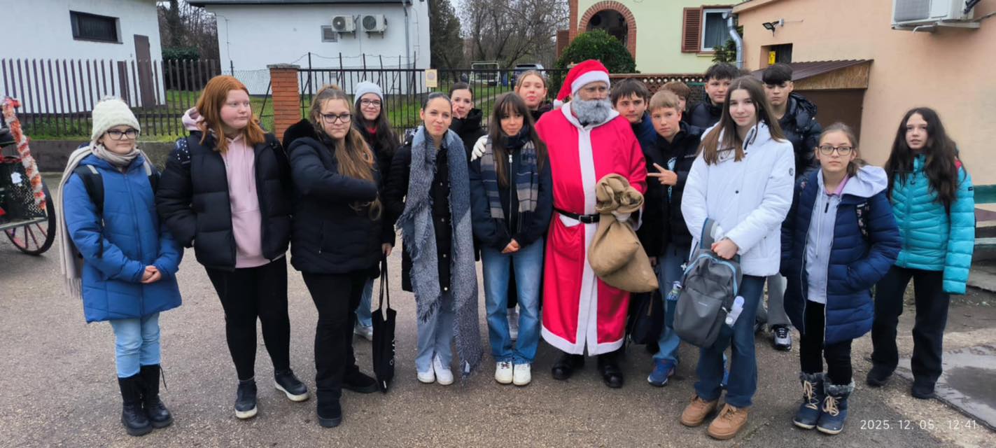 A 7. bések időszűke miatt csak 1 közös fotót tudtak csinálni. A viszontagságos buszos utazás után azonban a Mikulással találkozhattak a buszmegállóban, akitől finomságokat kaptak.