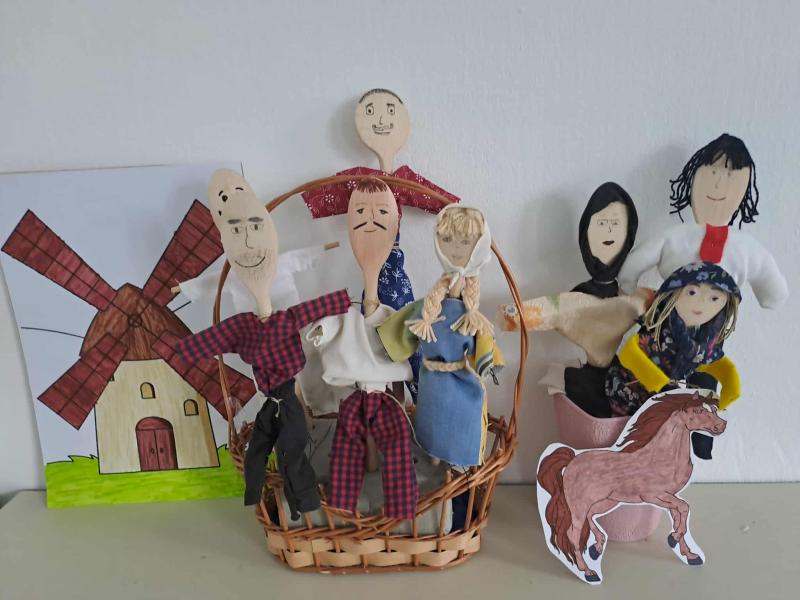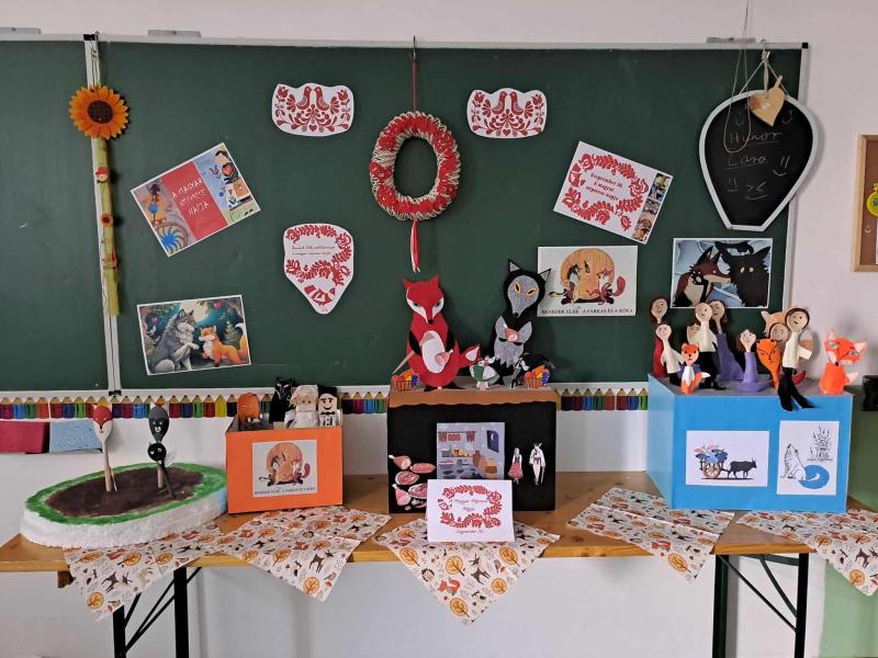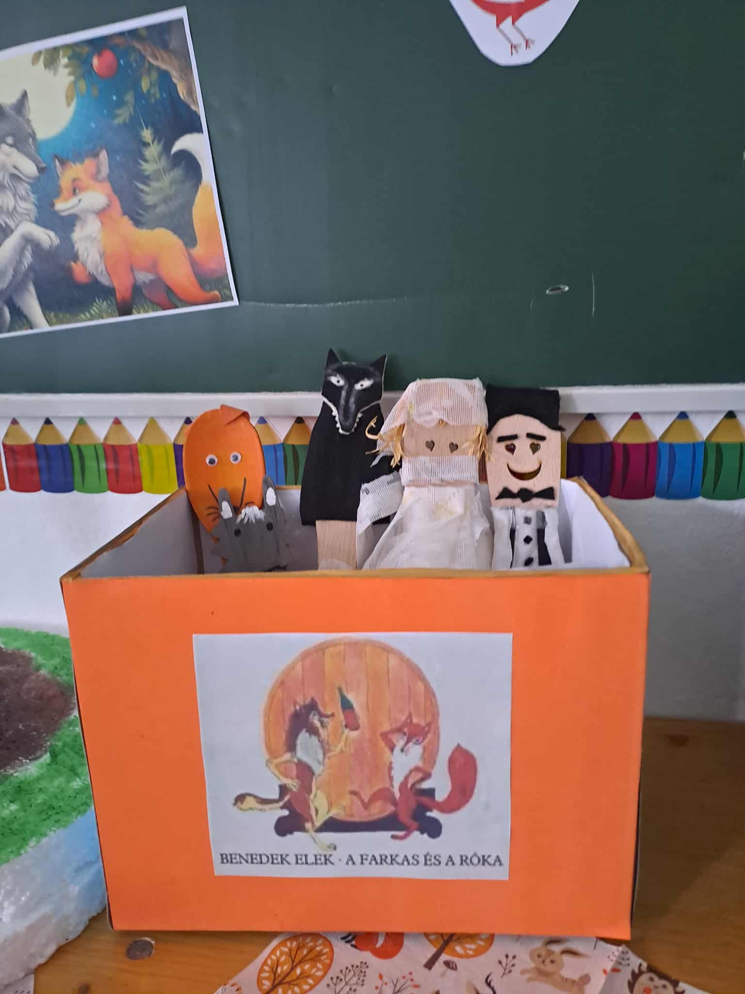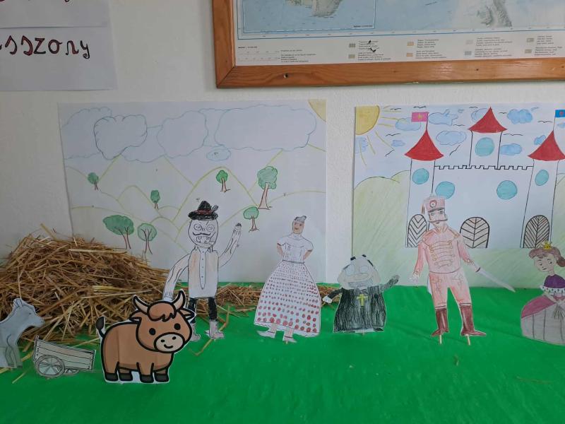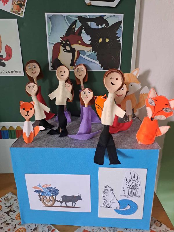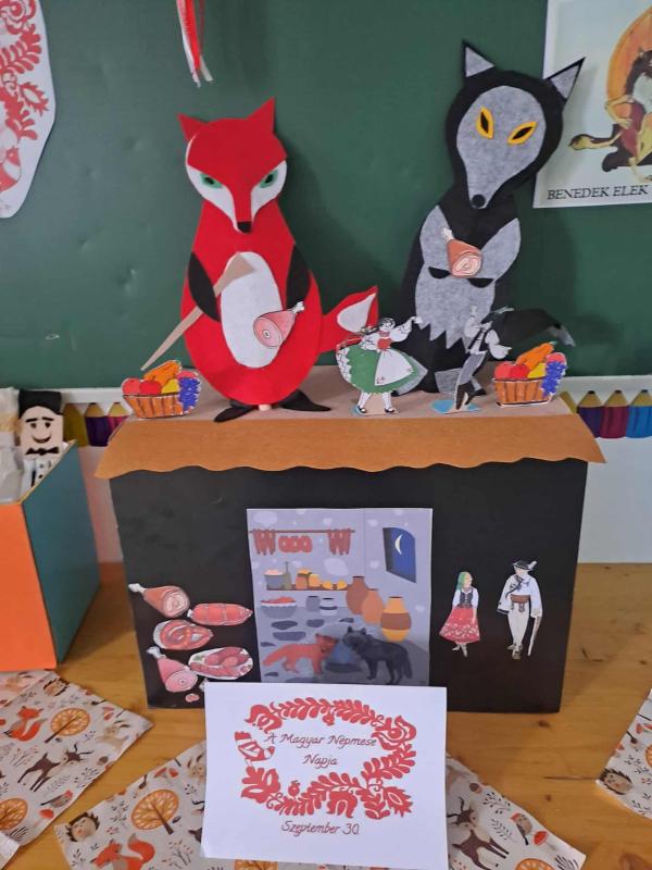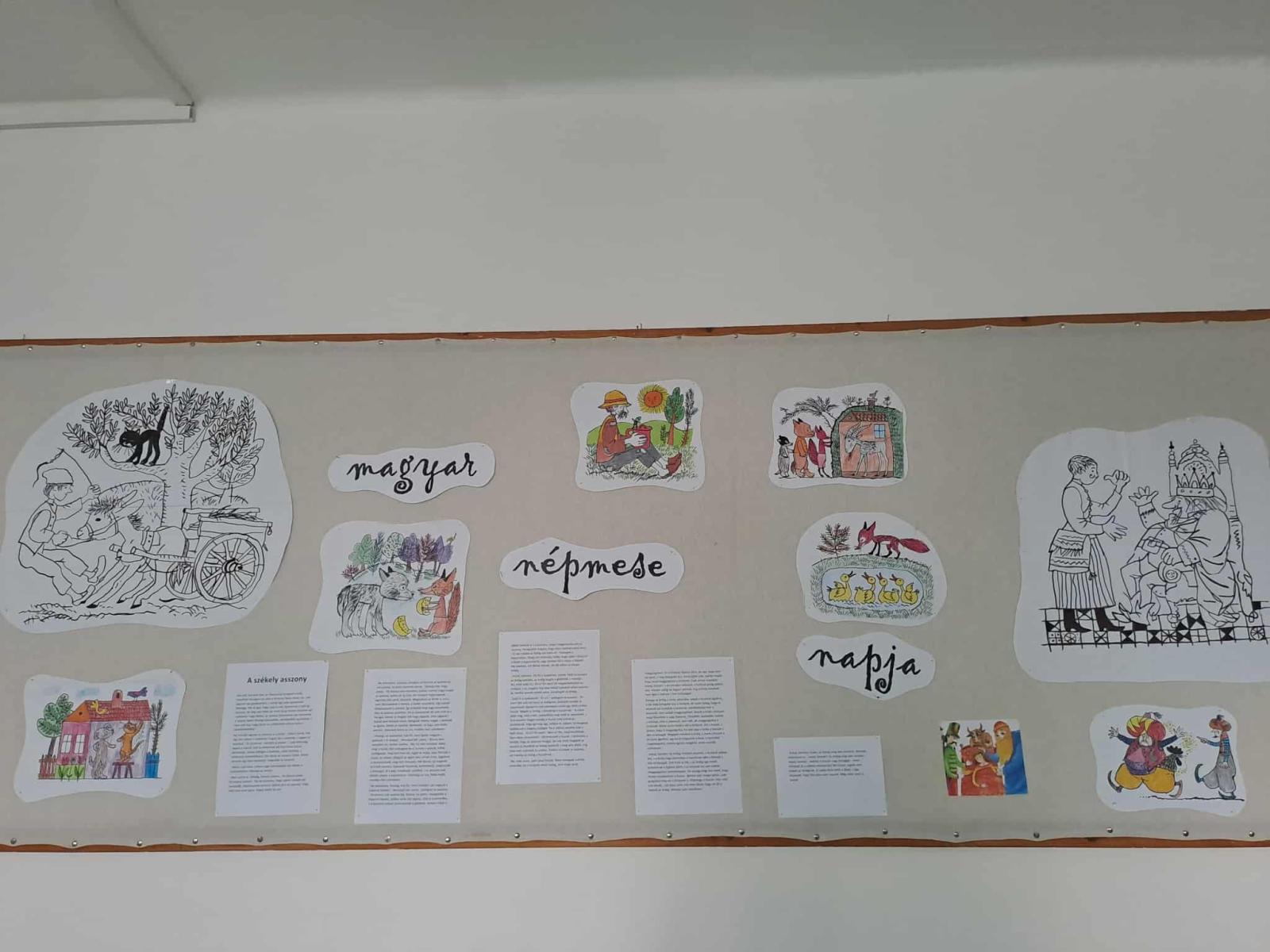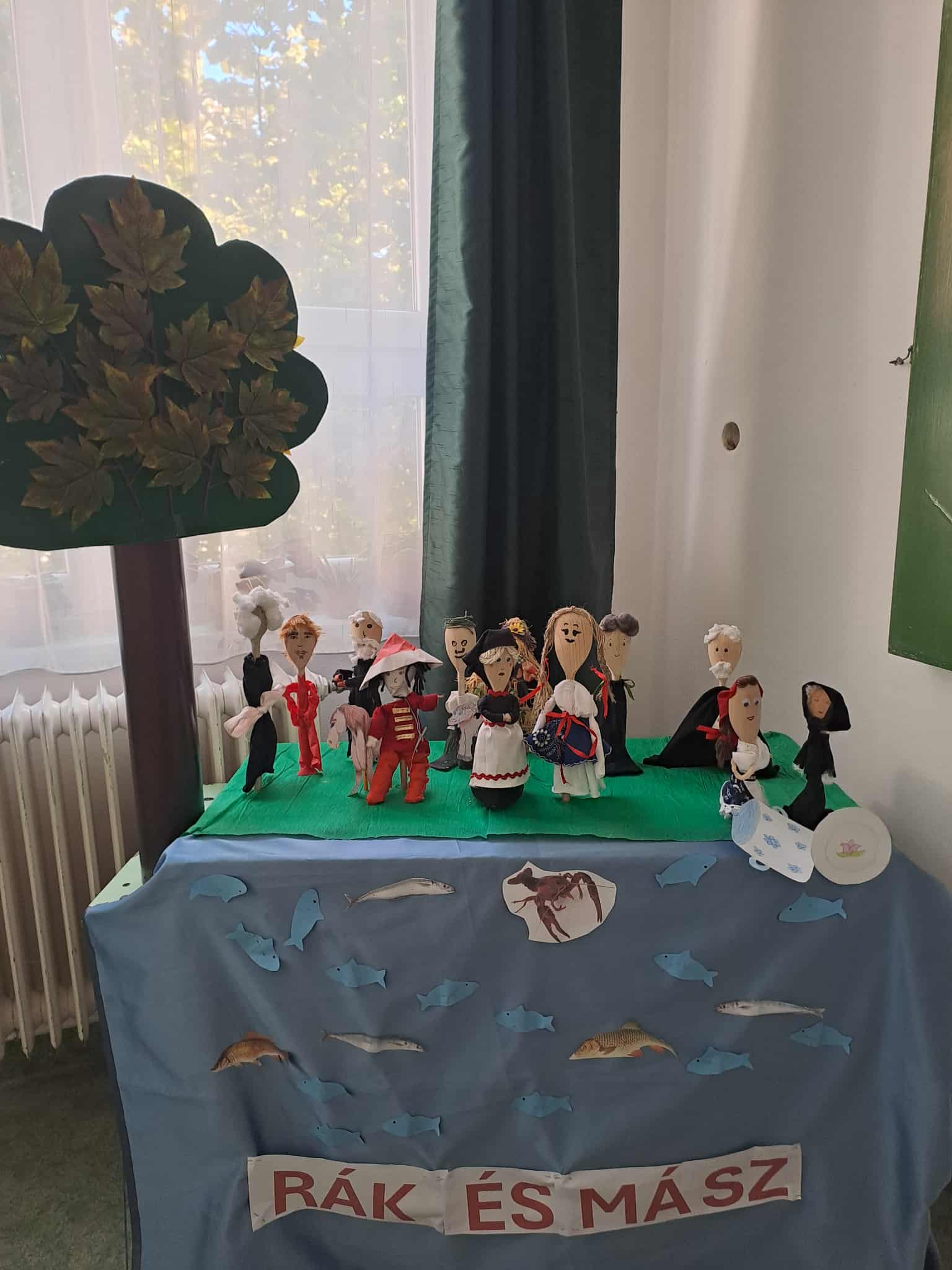 Felső tagozatos tanulóink népmesés projektet valósítottak meg szeptember hónapban osztályfőnökeikkel. Minden osztálynak sorsoltunk egy Benedek Elek által gyűjtött népmesét, amelyből fakanál báb installációkat készítettek a gyerekek szeptember utolsó napjára. Miután megismerkedtek a mesével terveztek, szabtak, varrtak, szerepeket osztottak, s állították össze az elkészített alkotásokból az osztálytermi dekorációkat, kiállításokat. Mesehallgatás közben fantáziáltak, karaktereket tervezgettek, s mire a „boldogan éltek, míg meg nem haltak” mesebefejezéshez értek, ismét kiderült, hogy a hős elnyerte jutalmát. Hiszen a gyerekek a mesékből jól tudják: mindig van olyan út, amelyen érdemes elindulni; kitartással, szorgalommal, leleményességgel el lehet érni az óhajtott célt nemcsak a mesékben, hanem a saját életükben is.