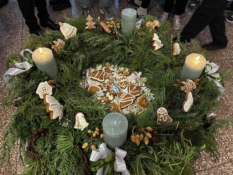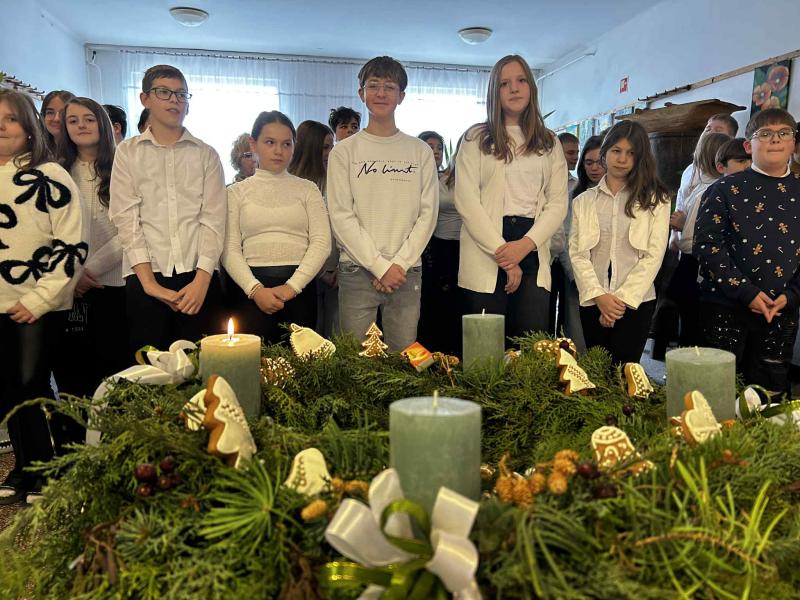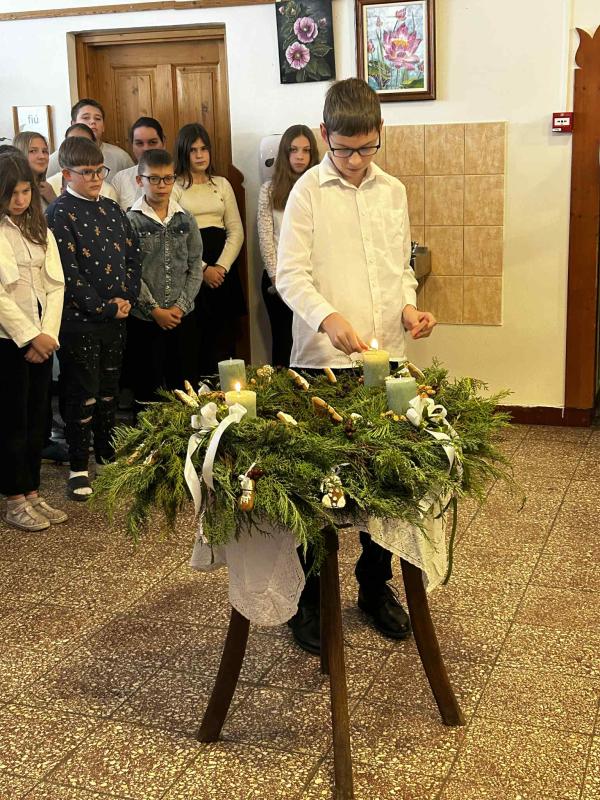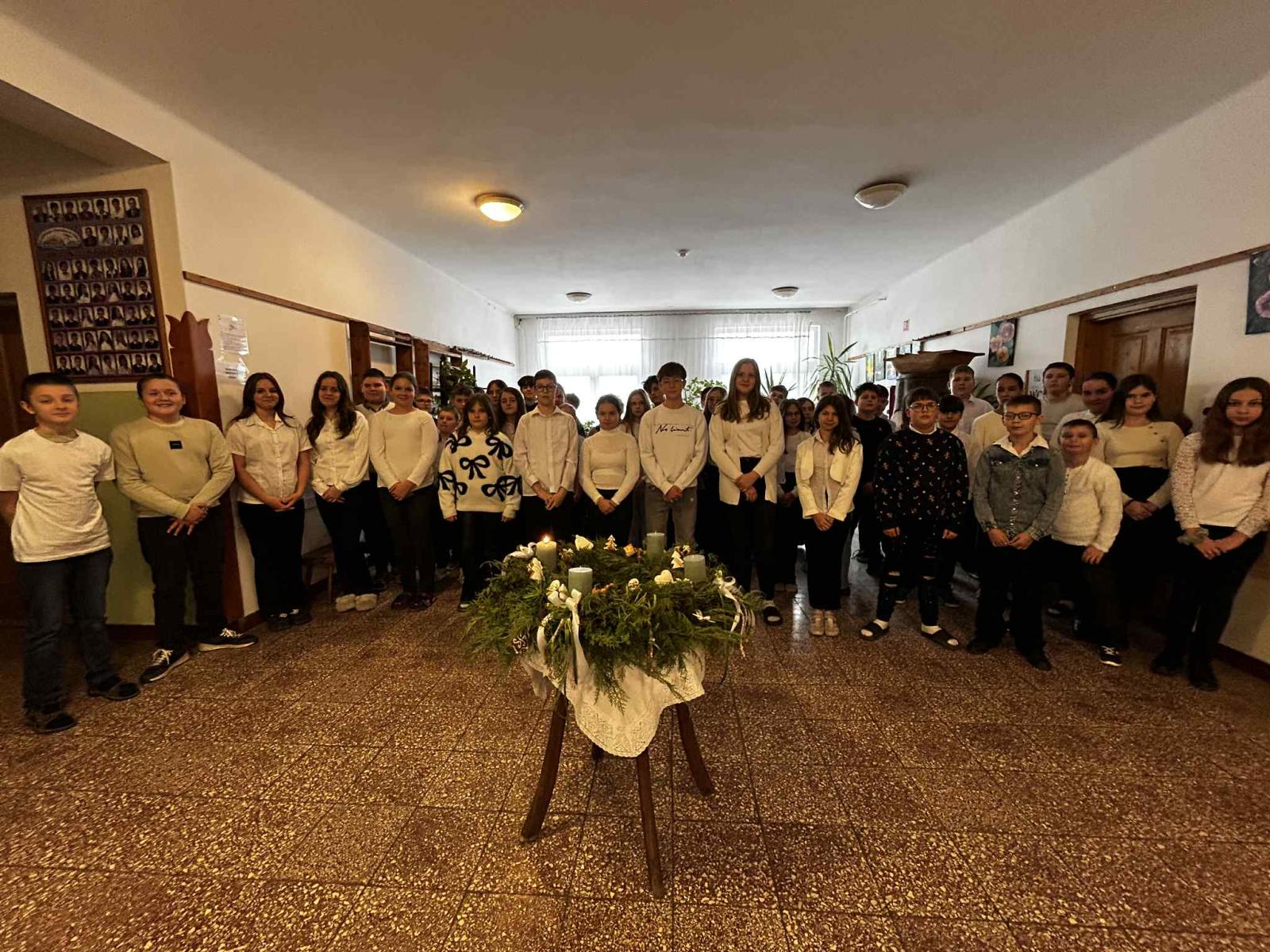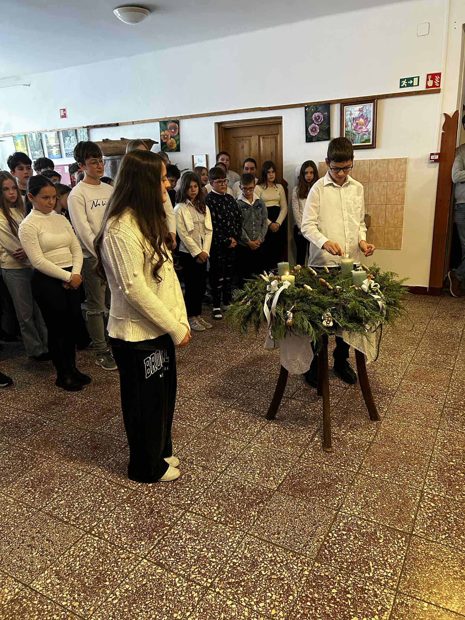 Iskolánkban ma újra összegyűltünk, hogy közösen gyújtsuk meg az adventi koszorú második gyertyáját. A csendes várakozás és az összetartozás hangulata lengte be mindkét tagozatot. Az alsó tagozaton a 2. évfolyam kedves, lélekemelő műsora után Szabó Anna főigazgató-helyettes asszony gyújtotta meg Advent második gyertyáját. A felső tagozaton a 6. évfolyam meghitt műsorral készült, majd ők lobbantották lángra a gyertyát, amely a reményt és a békét jelképezi. Ezek a közös élmények segítenek abban, hogy a mindennapok rohanásában is megálljunk egy percre, és együtt fordítsuk figyelmünket a közelgő ünnep valódi üzenetére.