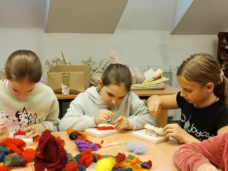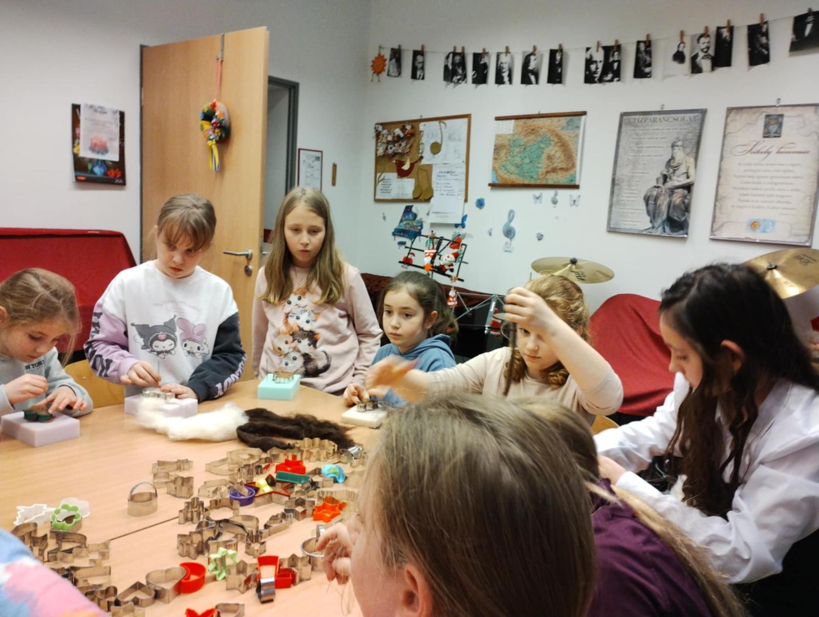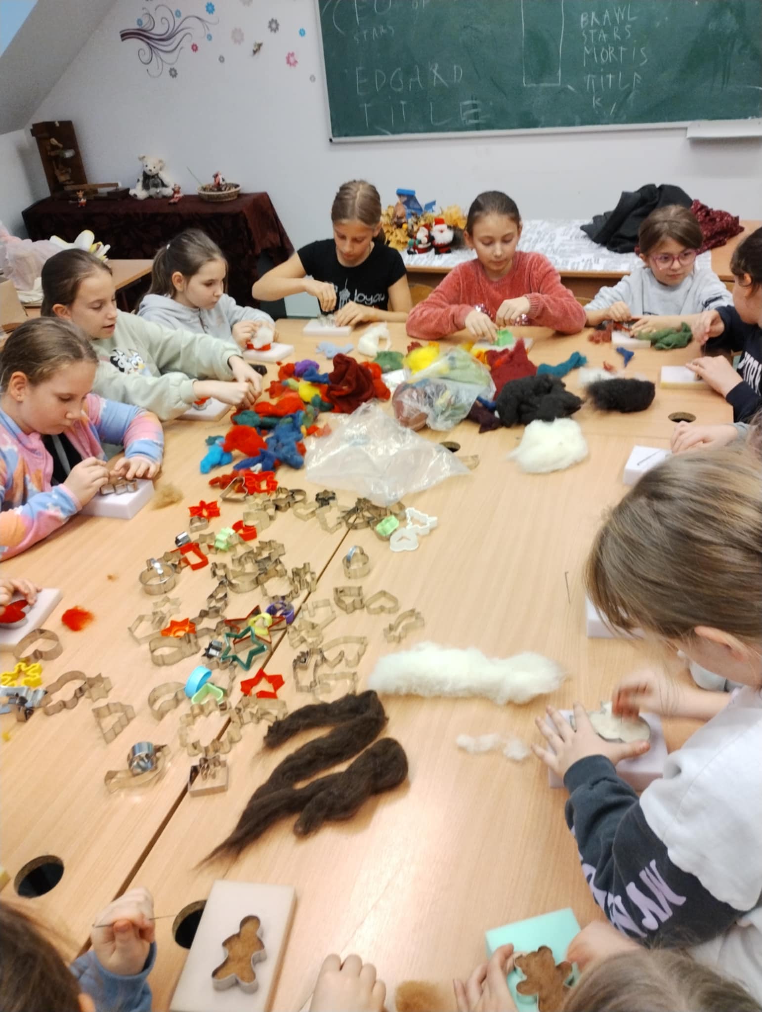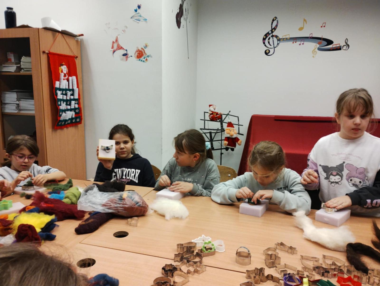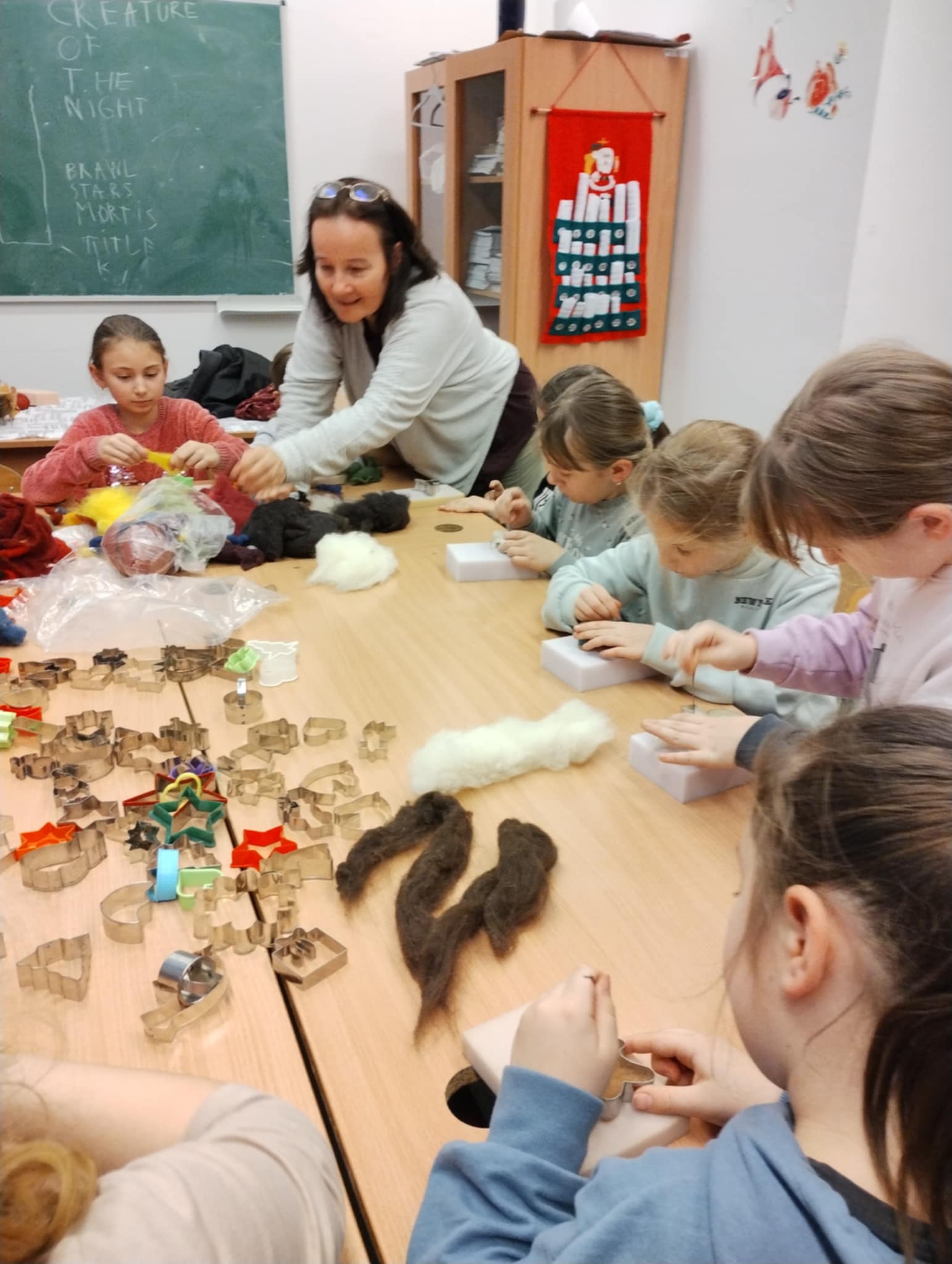 December 8-án ismét remek program színesítette a kézműves foglalkozást. Fábián Judit a nemezelés titkaiba vezette be a gyerekeket, akik nagyon türelmesen és örömmel dolgoztak a nemezelő tűvel, miközben tömörítették a gyapjút. A sütiszaggató formák segítségével készültek el az aranyos kis figurák. Nagyon szépen köszönjük Juditnak, ezt az emlékezetes foglalkozást.