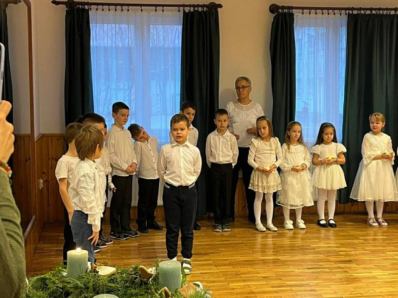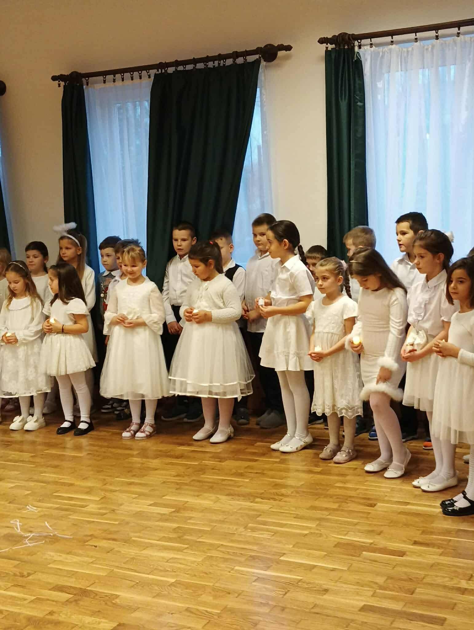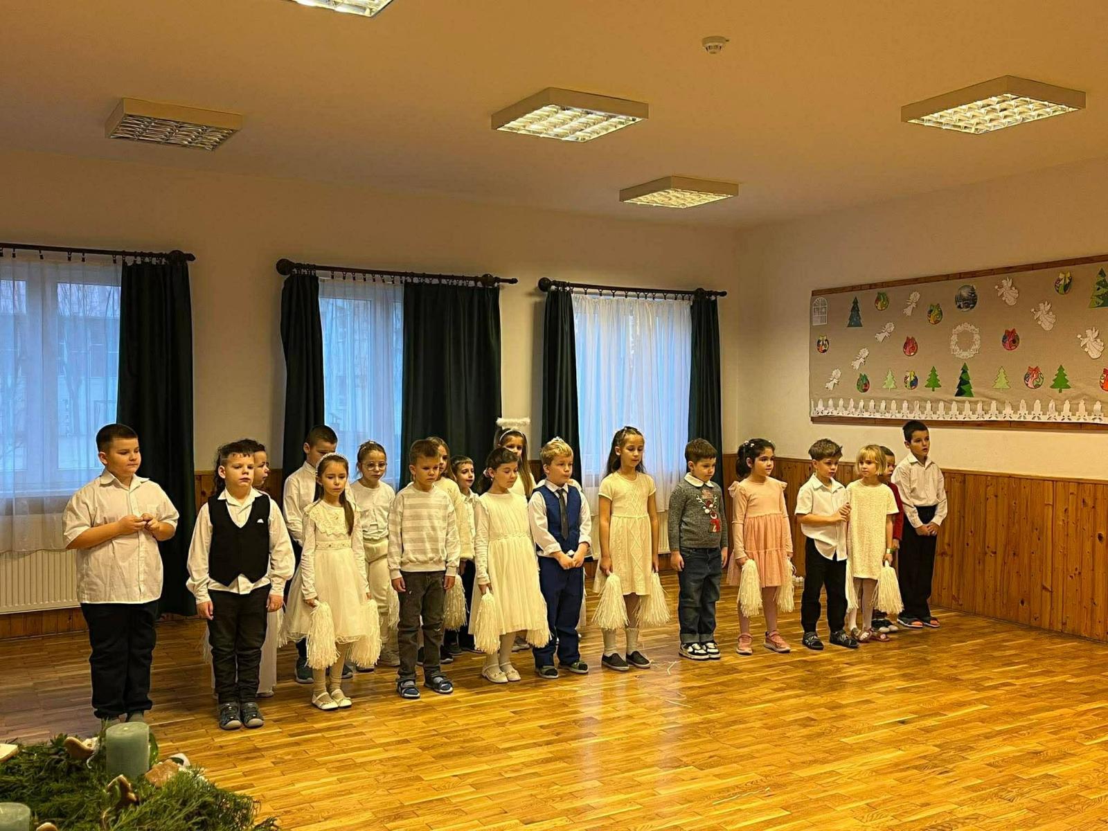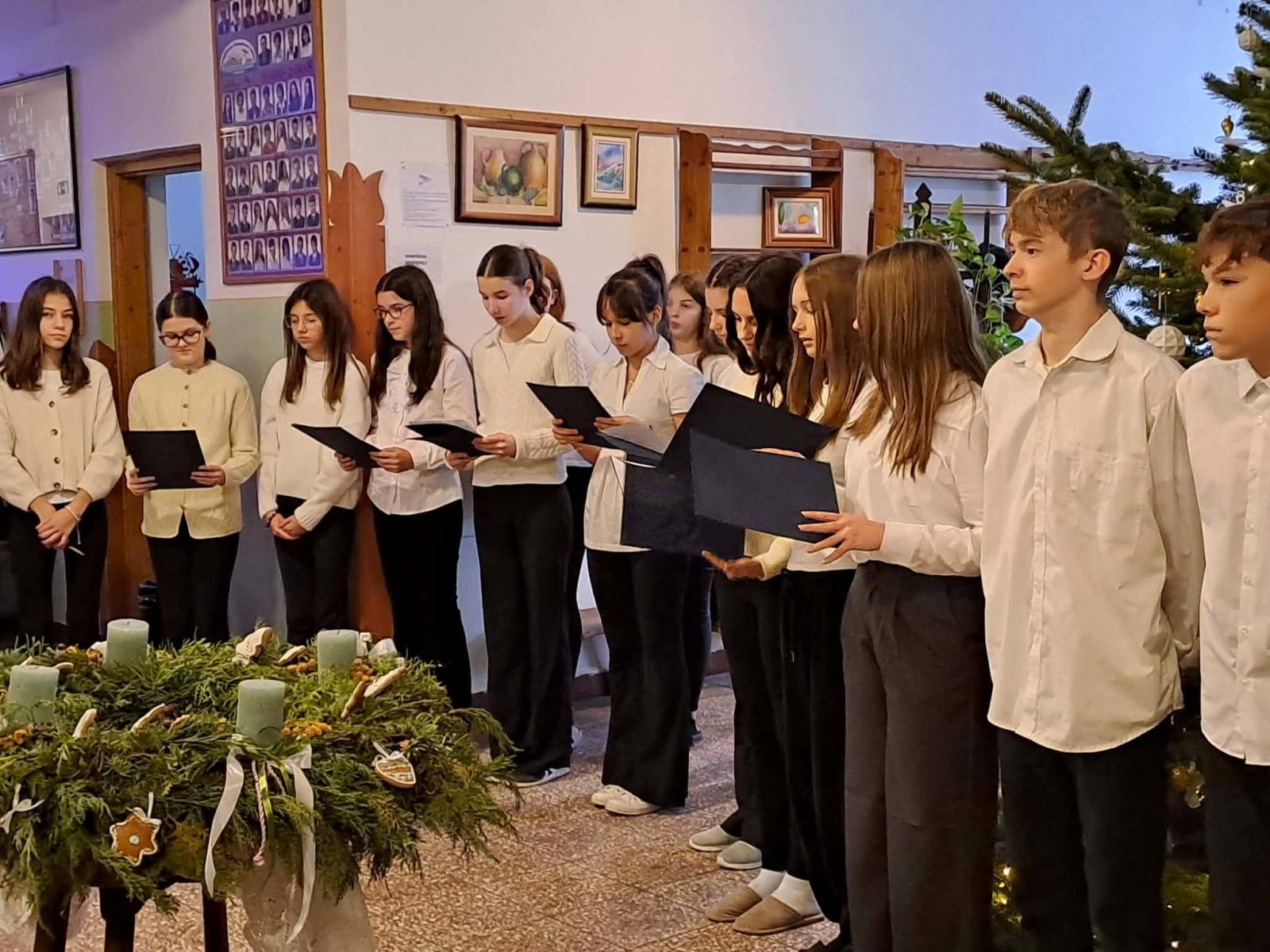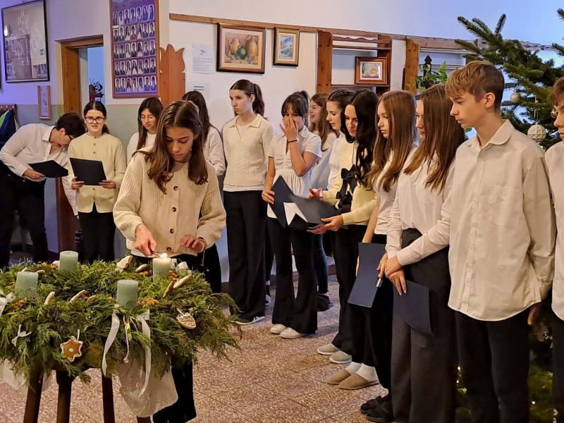 Hétfőn reggel az alsó tagozatosok adventi koszorúján is fellobbant az öröm gyertyájának lángja. Az 1.a és 1.b osztály tanulói meghitt, bájos műsorral készültek erre az alkalomra.