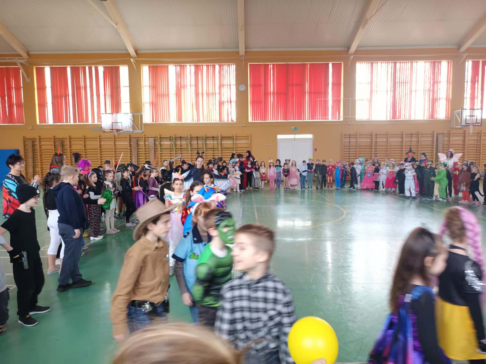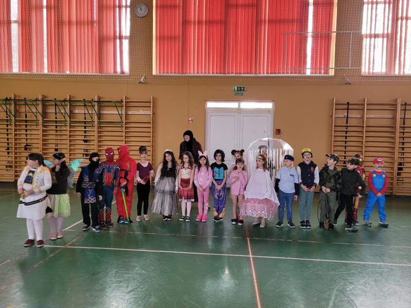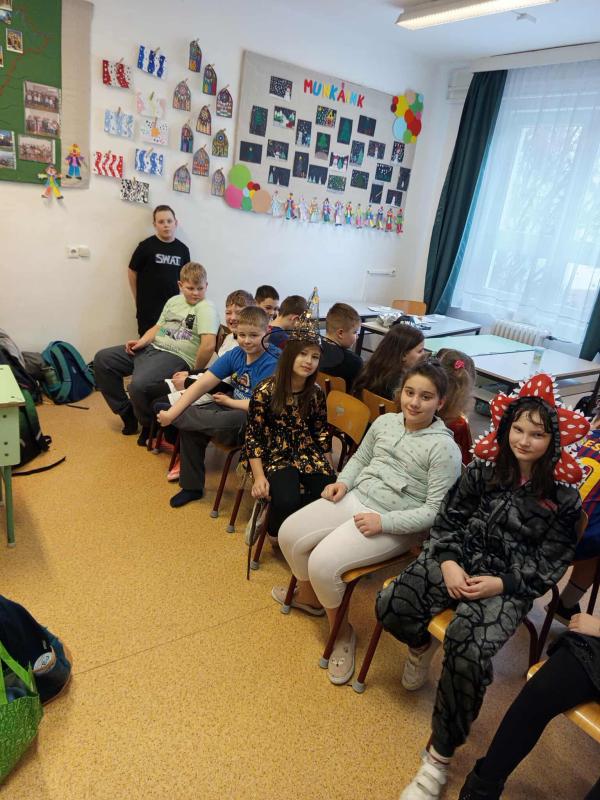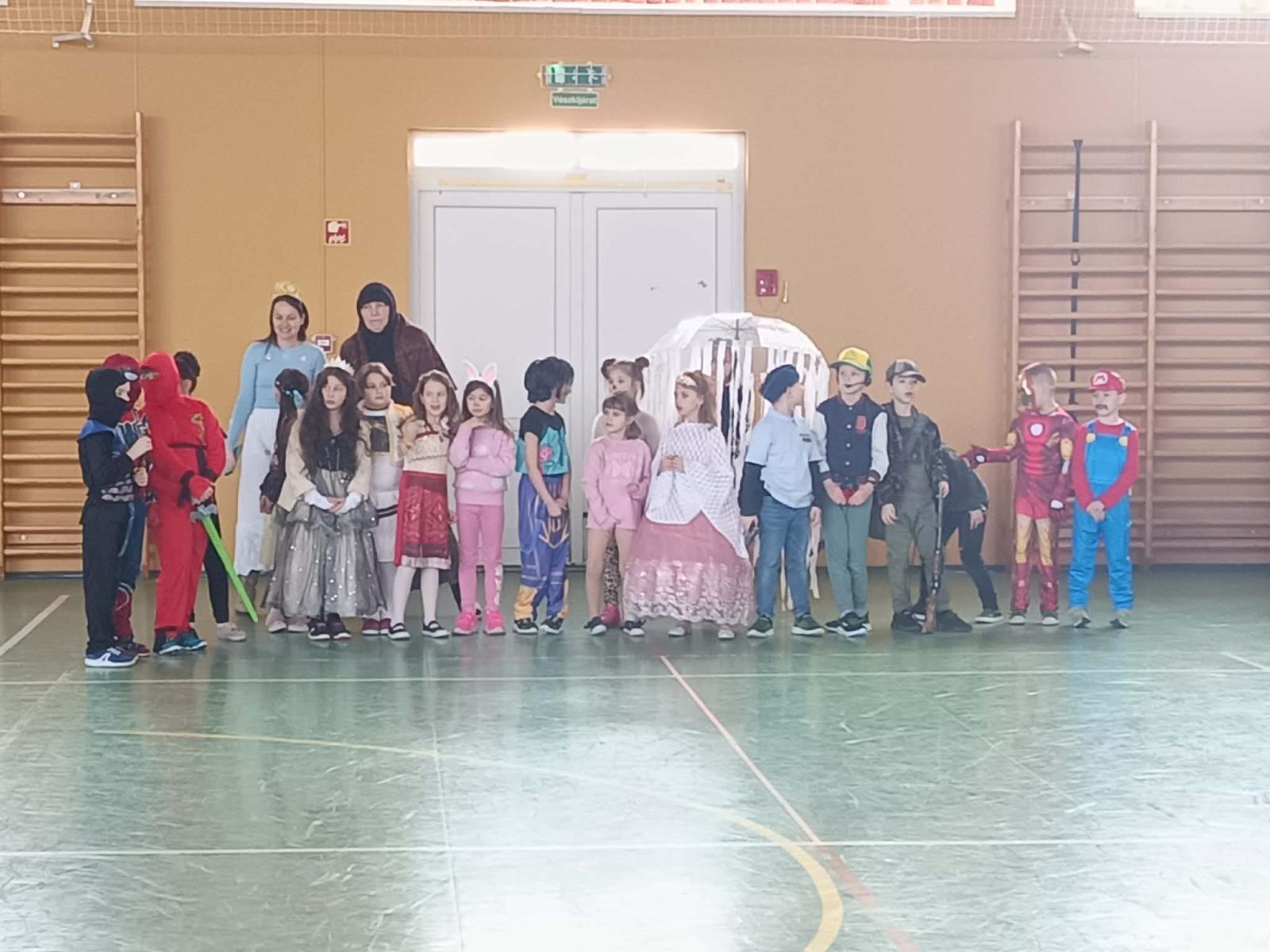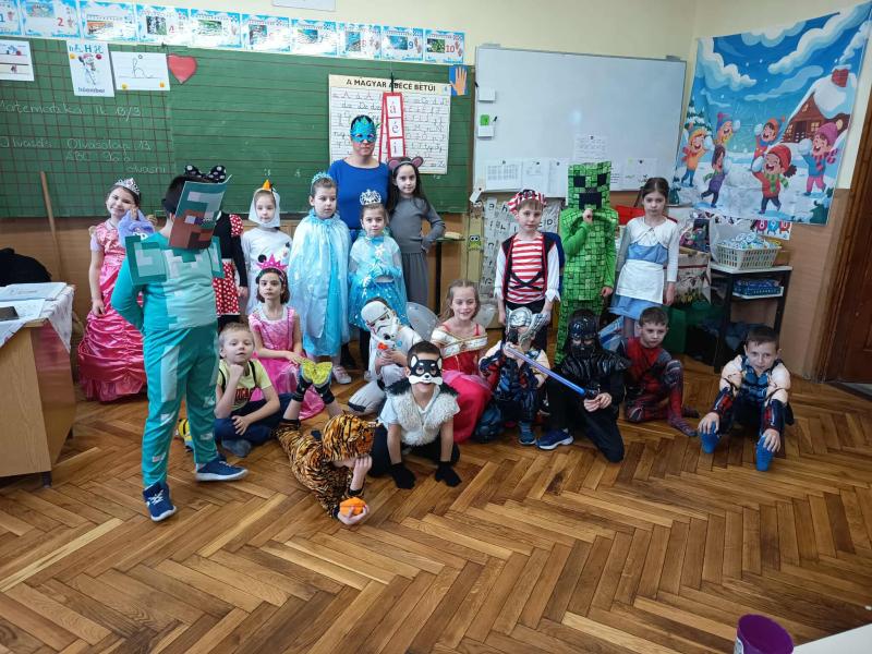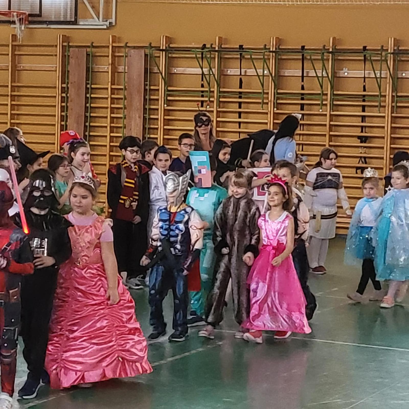 Az alsó tagozaton február 6-án mindenki jelmezt öltött és kezdetét vette a télűző mulatság. A nap elején osztályaikban játszottak a gyerekek, majd a harmadik órától kezdetét vette a közös buli a tornacsarnokban. Megcsodáltuk egymás jelmezét, majd jót mulattunk együtt.