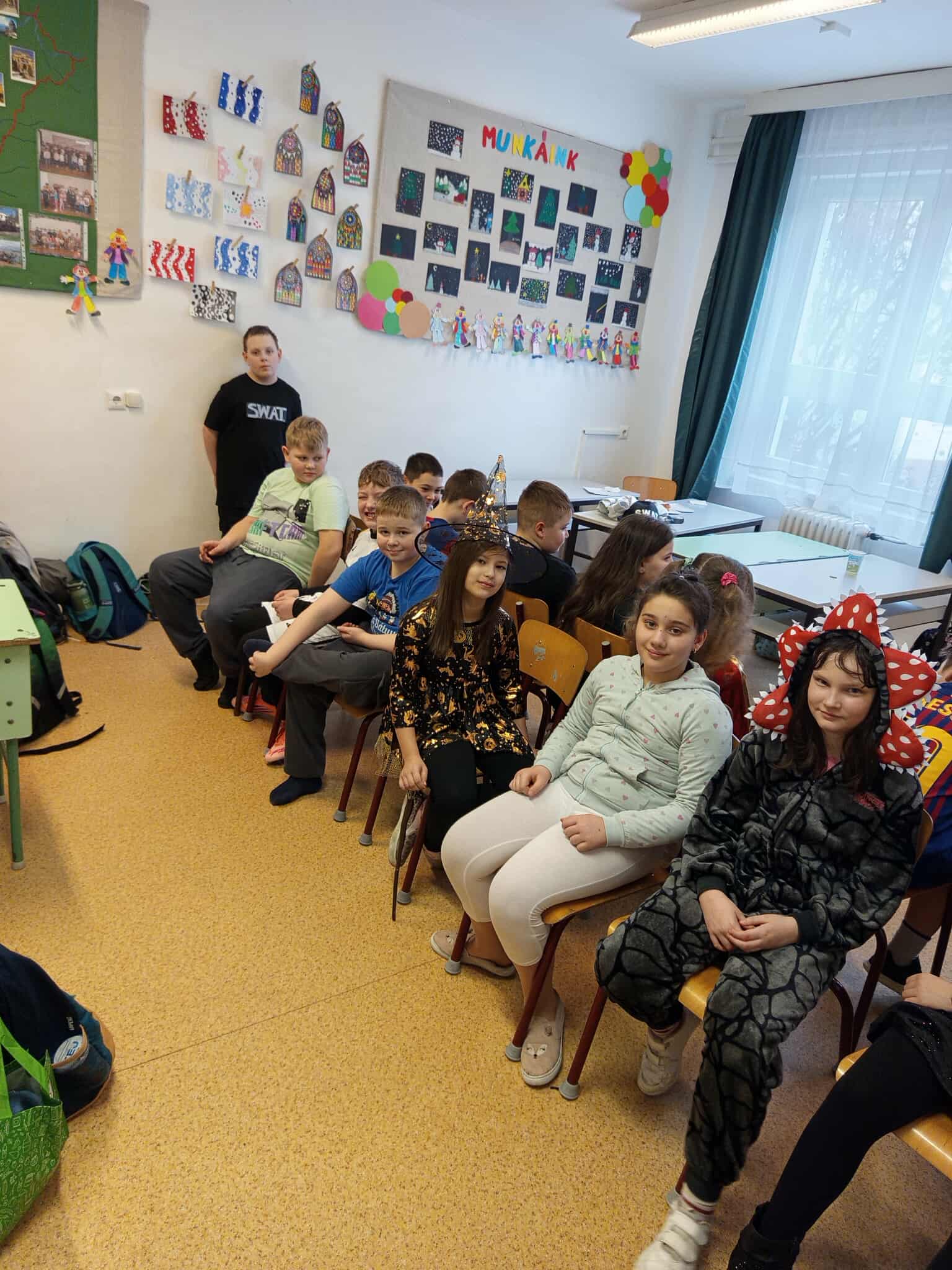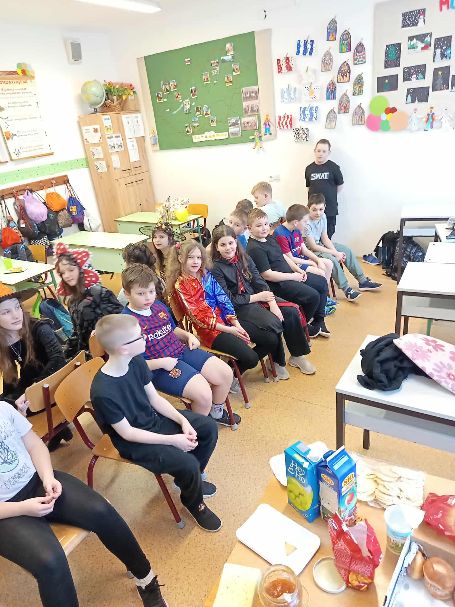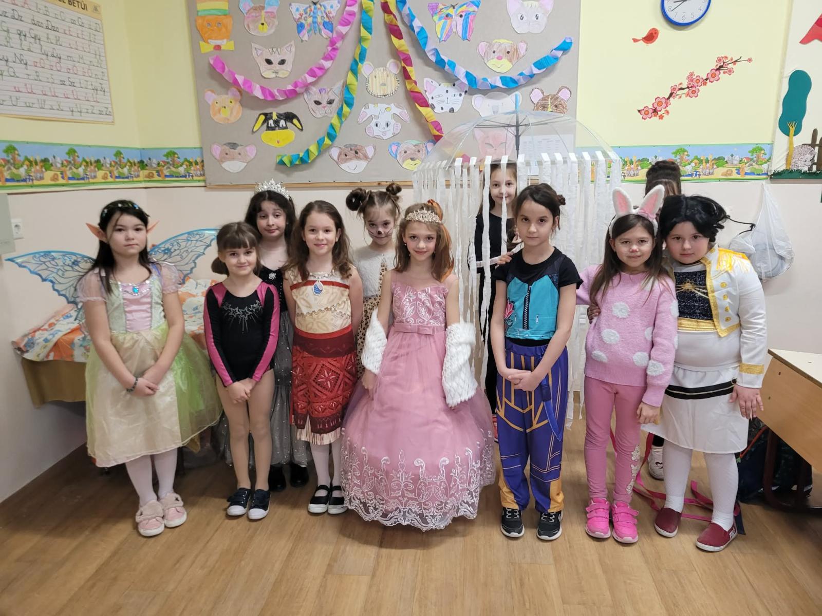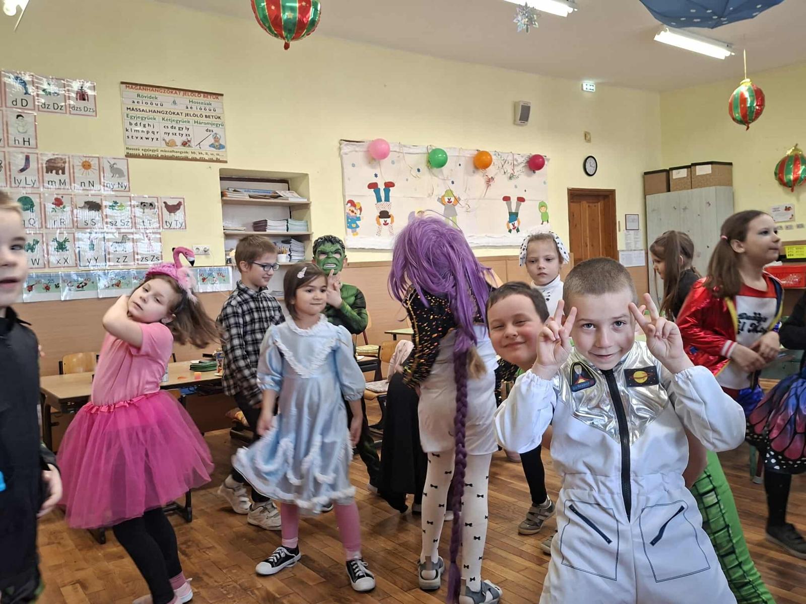 Az alsó tagozaton február 6-án mindenki jelmezt öltött és kezdetét vette a télűző mulatság. A nap elején osztályaikban játszottak a gyerekek, majd a harmadik órától kezdetét vette a közös buli a tornacsarnokban. Megcsodáltuk egymás jelmezét, majd jót mulattunk együtt.