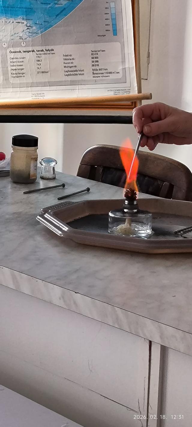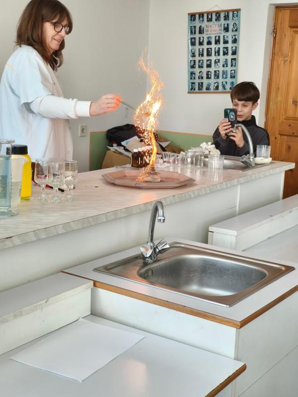 Ennek keretében a 7.a és a 7.b osztály diákjai érdekes kémiai kísérleteket láthattak, végezhettek. Váminé Hegyi Angéla tanárnő a gyerekek bevonásával mutatta be az érdekes kísérleteket tűzzel, vízzel és természetesen kémiai anyagokkal. Öröm volt látni, ahogy a gyerekek izgatottan várták, hogy vajon melyikőjük feltételezése válik valóra a kísérlet során. 2 kísérletet a diákok is elvégezhettek kisebb csoportokban. Fáradhatatlanul próbálkoztak a gemkapocs vízre helyezésével, illetve alkotóelemeinek szétválasztásával. Óra után izgatottan mesélték társaiknak az élményeiket. Köszönjük az Alapítványnak a lehetőséget, Váminé Hegyi Angéla tanárnőnek (és segítőjének) pedig, hogy eljött hozzánk és bemutatta a kísérleteket.