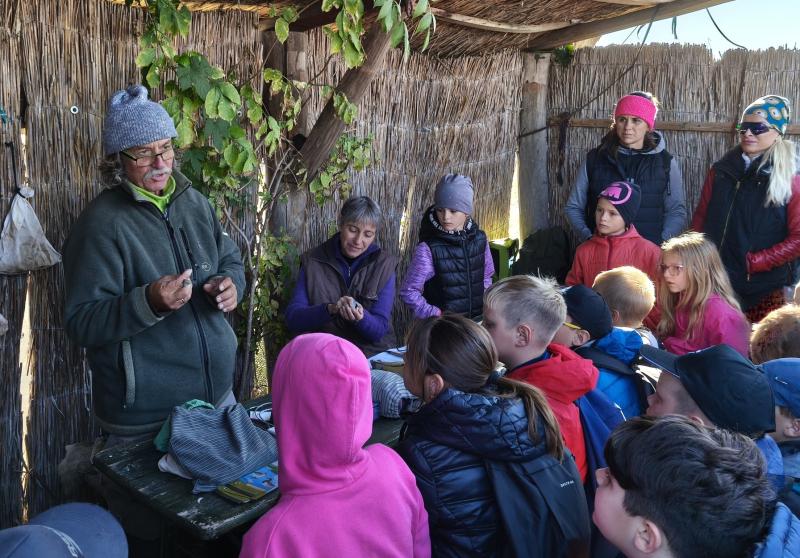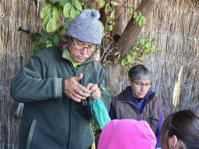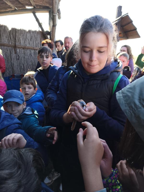 Reggel Fenyvesi László, a dinnyési Madárdal Tanösvény gyűrűző kunyhójában köszöntötte csoportunkat. Laci bácsi először a Dinnyési-fertő élővilágáról, a madármegfigyelés és madárgyűrűzés jelentőségéről mesélt. Az év madaráról, a böjti récéről is több érdekességet hallhattunk, majd a gyakorlatban is megfigyelhettük a gyűrűzést. A kunyhó oldalán mozgó vászonzsákokra lettünk figyelmesek, amelyekből sorra barkós cinegék kerültek elő. Laci bácsitól azt is megtudtuk, hogy ezek az apró kis madarak egész életükre választanak párt maguknak, s valóban mindig együtt repülnek, fészkelnek. Miután megtanultuk, hogyan kell helyesen tartani a madarakat, a kezünkbe is vehettük őket. Az apróságok szívverését, testük melegét éreztük a tenyerünkben. A gyűrűzés után gyalogtúrára indultunk, a terepen figyelhettük meg a Dinnyési-fertő állat- és növényvilágát, a kihelyezett befogóhálókat, mesterséges madárodúkat. A déli órákban kellemesen elfáradva érkeztünk vissza Dinnyésre. Kezdetben tiltakoztunk a séta ellen, de biztosan vissza fogunk még látogatni a fertő területére. Nagyon köszönjük a szülők segítségét az utaztatásban!