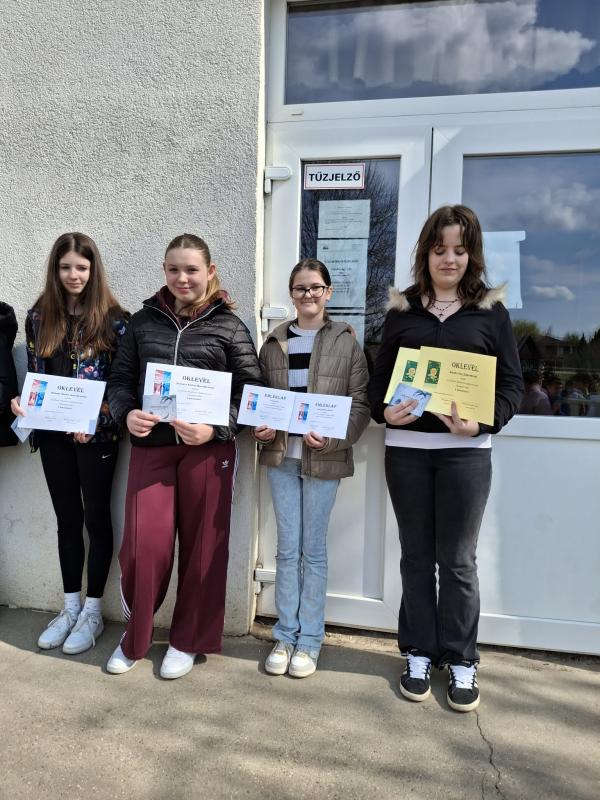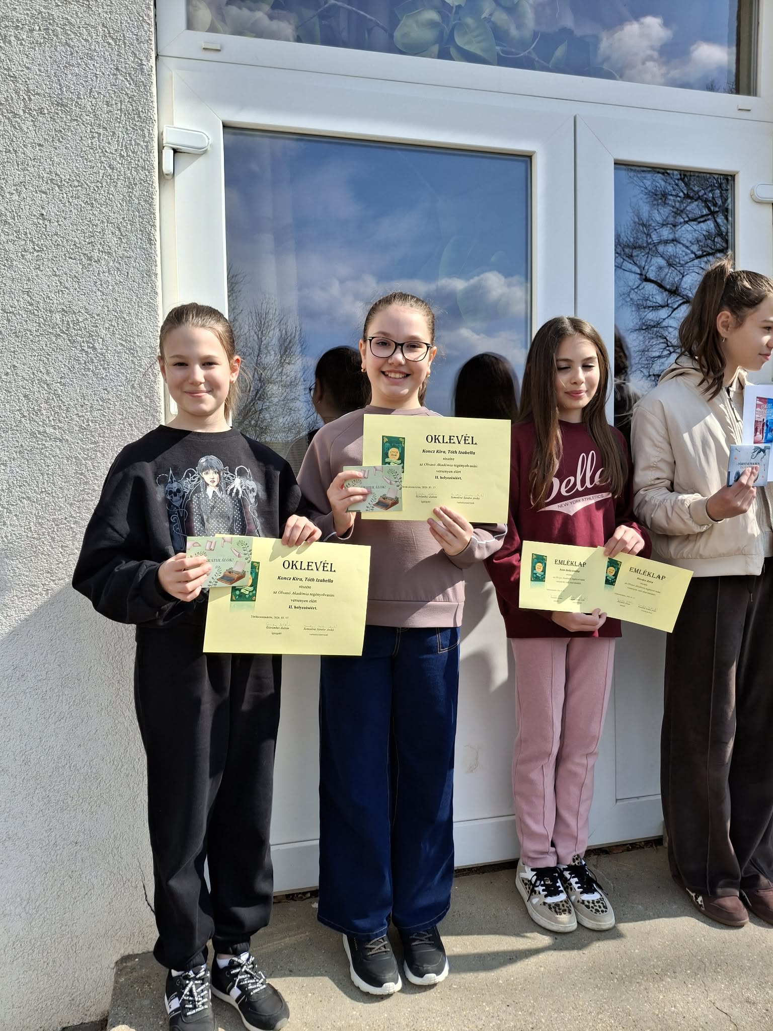 A Baptista Szeretetszolgálat EJSZ Kölcsey Ferenc Általános Iskolája által meghirdetett Olvasó Akadémia országos regényismereti versenyre iskolánkból 7 csapat nevezett az idei tanévben. Hatodik alkalommal kapcsolódtunk be ebbe a szövegértést, szövegalkotást, kreativitást, kooperatív kompetenciát igénylő versengésbe. Az 5-6. évfolyamos tanulók Ruff Orsolya A titokzatos budapesti térkép, a 7-8. évfolyamos tanulók Kollár Betti Esküdt ellenségek 1. című regényét olvasták el, s oldották meg a regényhez kapcsolódó feladatlapot, és készítették el projektfeladataikat. Iskolánk diákjai kiemelkedően szerepeltek, hiszen előkelő helyen végeztek, s 4 dobogós helyezést is szereztek. Örömmel tölt el bennünket, hogy a mindennapos iskolai teendők mellett tanulóink szabadidejükben időt szakítanak az olvasásra, a közös gondolkodásra. Eredményességük társaikat is ösztönözheti a digitális világtól való elszakadásra, a könyvek birodalmában való barangolásra.