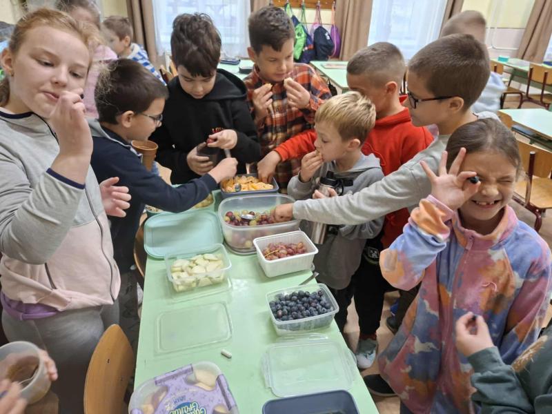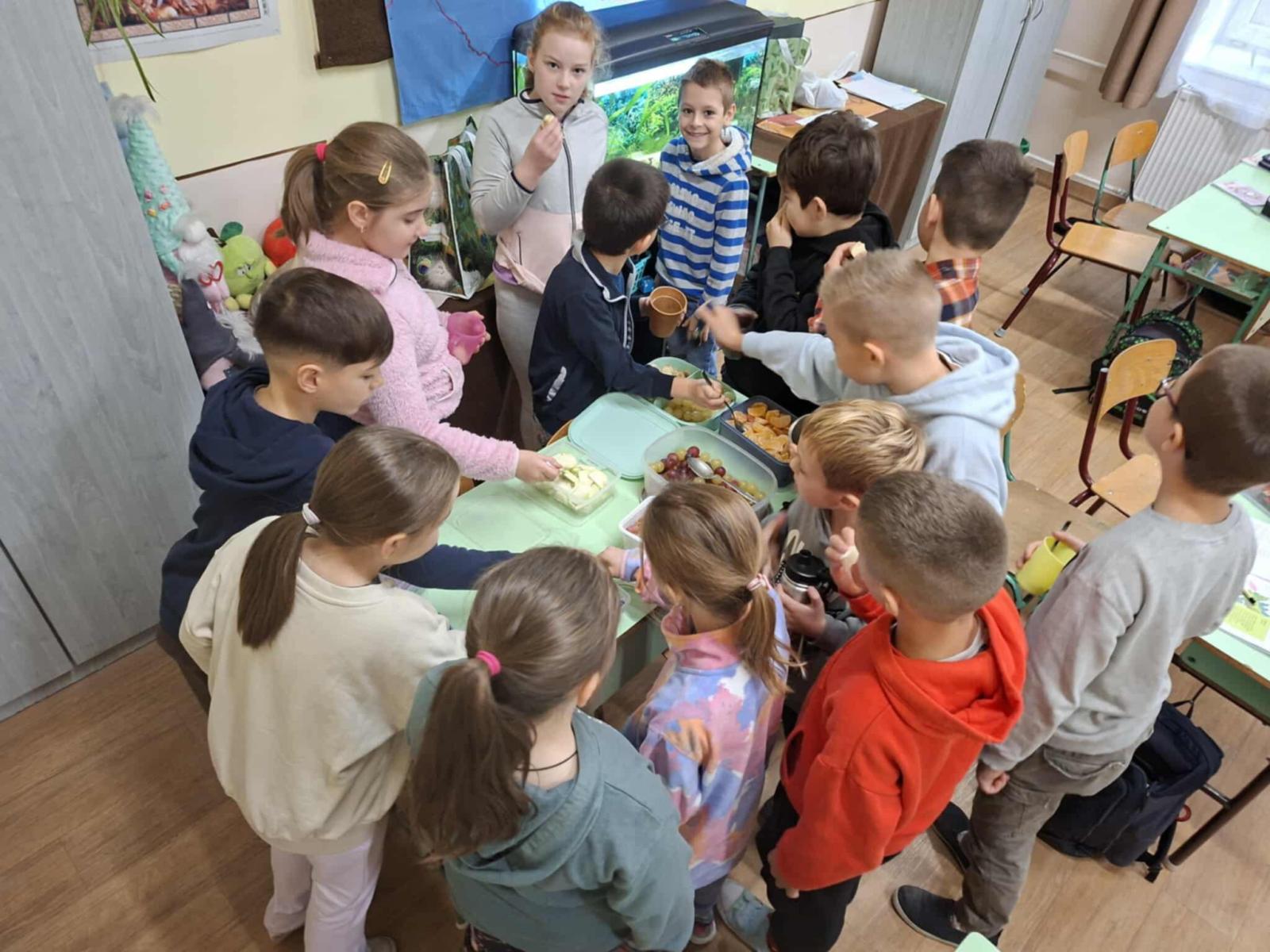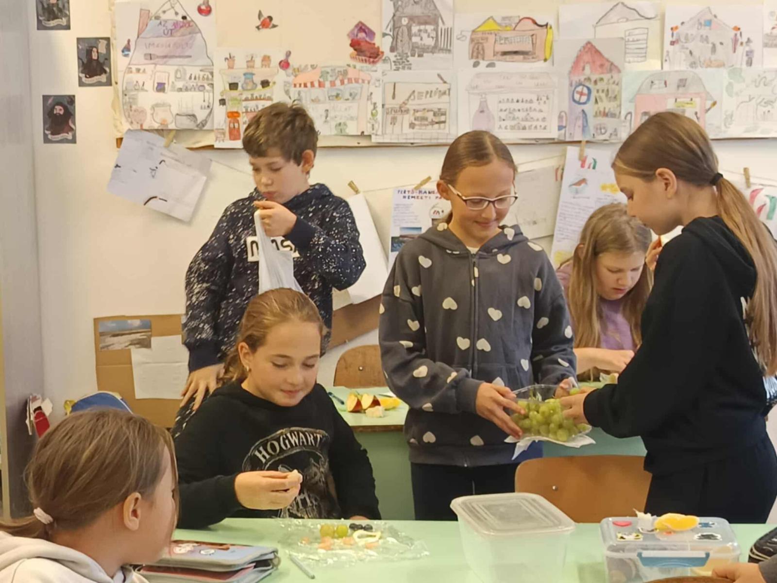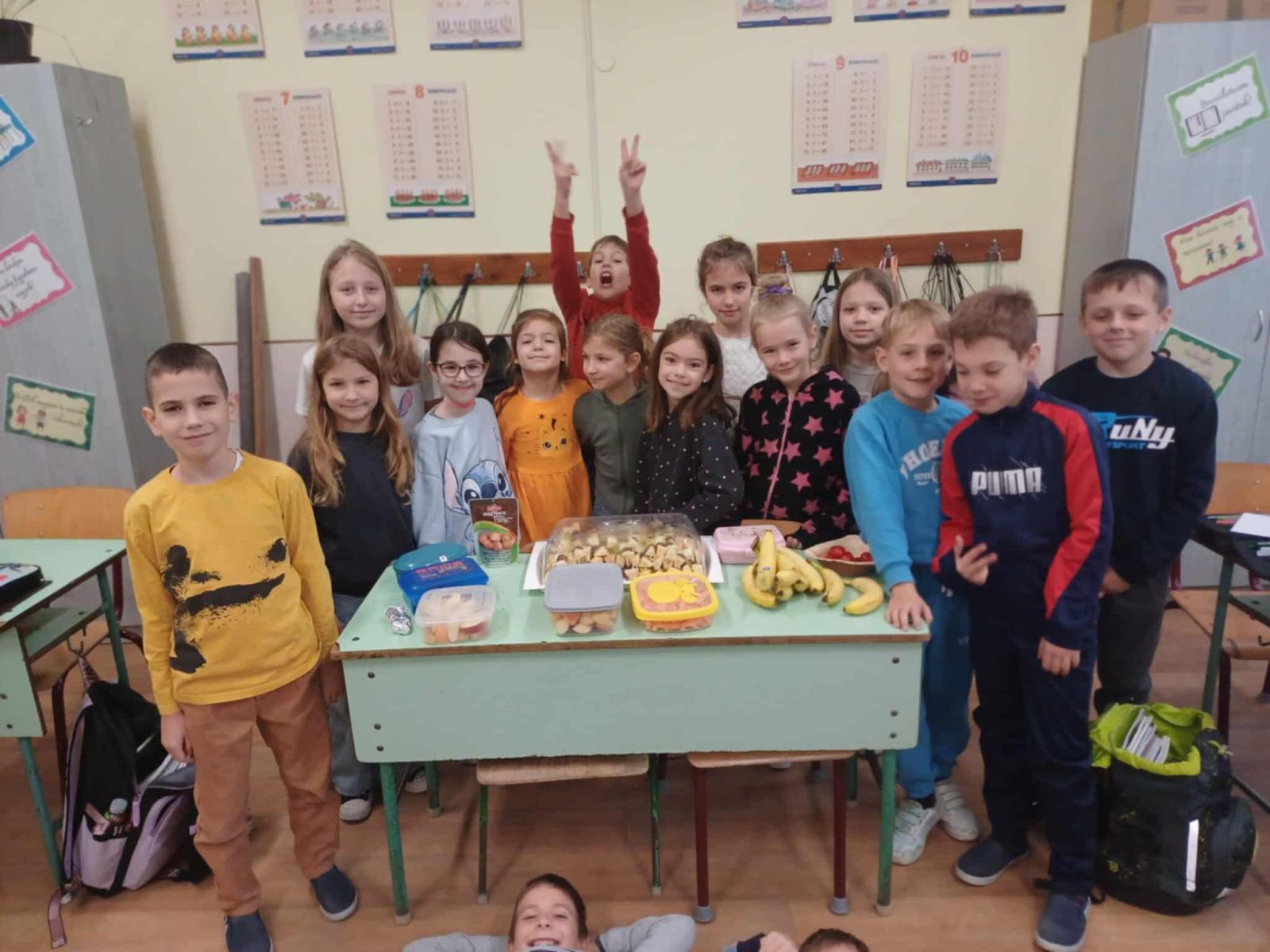 Idén is megtartottuk november hónapban már hagyományos Zöldség – és gyümölcshetünket. Ezen a héten tanítványaink a tízóraijuk mellé még zöldséget és gyümölcsöt is hoztak. Mindenki a kedvenceit és ezekkel kínáltuk egymást. Idén egy feladatlapos játékkal egészítettük ezt ki. 4 feladatlapot oldhattak meg az alsós diákok. Megismerhették ételeink - italaink és az egészség kapcsolatát. Foglalkoztak a tisztálkodással, a fogak ápolásával. Ismerkedtek az új magyar táplálkozási ajánlással, az „Okos tányérral”. Összesen 267 feladatlapot töltöttek ki és adtak le nekem. Néhány osztály nagyon komolyan vette a játékot és sok feladatlapot megoldott, sokat tanult ezen a héten!