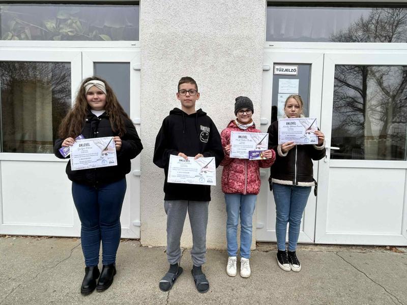 A vármegyei verseny előtt a felső tagozat tanulói évfolyamonként összemérték tudásukat a magyar helyesírás egyik legnehezebben tanulható témájában j és ly betűket tartalmazó szavak helyesírásában. Az első helyezést elért diákok képviselhetik iskolánkat a vármegyei versenyen.