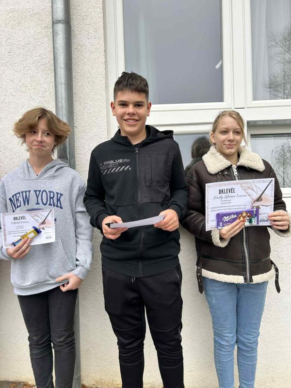 6. évfolyam: I. helyezett: Soczó Milán 6.a