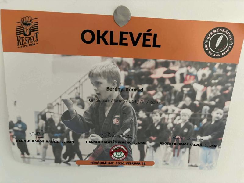 Berényi Konrád 6.b osztályos tanuló, aki a Sárosdi Kempo Sportegyesület szabadegyházi szakosztályának tagja is kiemelkedően szerepelt a III. Respect kupán: