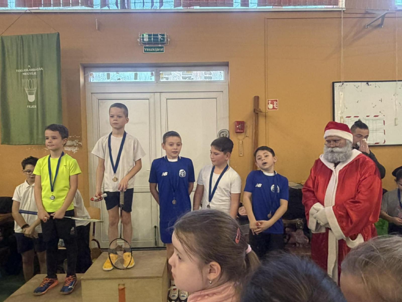 Míg ők külföldön ügyeskedtek, addig idehaza iskolánk tornacsarnokában megrendeztük a hagyományos Mikulás kupát. Olyan sokan jöttek, hogy csak fél óra késéssel tudtuk elkezdeni a versenyt. Jöttek Bodajkról, Dunaújvárosból, Érdről, Gárdonyból, Keszthelyről, Mórról, Polgárdiból, Szabadegyházáról, Székesfehérvárról, no és persze Seregélyes is képviseltette magát ezen a versenyen. Míg a versenybíróság dolgozott, addig a csinos krampuszlány és a bájos manólány osztogatták a szaloncukrot, később pedig segítettek a télapónak a megérdemelt érmek és csokik kiosztásában. Az aulában ezalatt a helyi Vöröskereszt Alapszervezete tevékenykedett. Vérnyomásmérésre, vércukorszint-merésre is lehetett jelentkezni náluk. Hálásan köszönjük, hogy idén is eljöttek! A közelükben pedig lehetett rajzolni, hogy a várakozás ne legyen unalmas. A 33 páros és a 63 egyéni induló összesen 249 meccset játszott! Ennek ellenére alig akadt türelmetlenkedő résztvevő. A hangulat remek volt. Az elpakolásban is akadt segítség, ami bizony jól jött. Ezúttal is gratulálok minden résztvevőnek és köszönöm a segítséget mindenkinek!